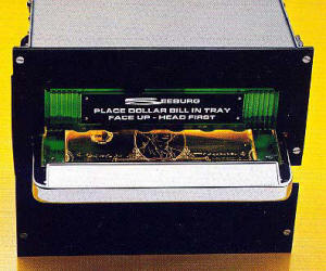 DBV2 Dollar Bill Validator. SPrice (September, 1974) $365. This was offered for any of the digital era or microprocessor 160-selection jukeboxes. The earlier DBV1 looked identical, but was incompatible. For use with a digital era jukebox, a Validator Interface Kit (VIK2 or VIK3, see below) was required. |