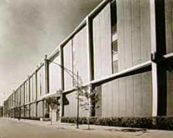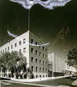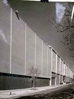 The original factory. The main plant is in the lower center. Jukebox production was actually on the third floor of this building, with electronic subassembly production on the second floor, offices and cafeteria were on the first. I believe the Engineering offices were in the building to its right, with riveting and the paint shop in the smaller buildings at the upper left. I don't know what was in the other buildings. The street on the left side running from the upper left to the lower middle is Blackhawk Street, while the one running from the lower middle to the upper right is Dayton Street. The street running from the upper left to the upper middle is Fremont Street, while the street running from middle right to upper middle is Weed Street. The new building (see next) ran along Dayton Street, causing Weed Street to be closed. The original building and Engineering building remained, with the Engineering building getting a new façade. |