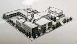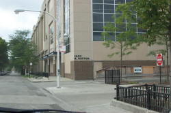 A photo of 1500 N. Dayton Street in Chicago, showing a modified version of the new building pictured above. This photo was taken in September, 2006, and was provided by Ron Rich. The shallow Vs at the roof line are about the only detail of the original building that still can be seen. |