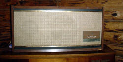 25 records, 16⅔ RPM Price (October, 1963): $895 Plays the same records as the Background Music systems. Evidently, the term 'foreground' comes from the cabinet being more furniture-like than the utilitarian cabinets of the BMS2 and BMC1. A sales brochure shows this unit as having a pair of modernistic legs for use as a floor-standing unit. The photo at left either has them removed, or it was also offered as a cabinet-top. Photo taken by Paul A. Hvizda, and provided by Randy Hvizda. Thanks! |