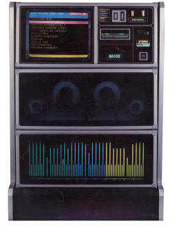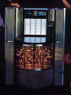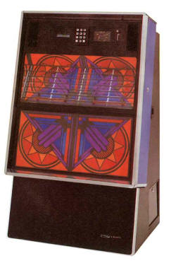 VMC1 Video Music Centre 200 Selections, 45 RPM. Introduced fall, 1981. Built by Stern/Seeburg. A completely new cabinet and selection concept, using a video screen to display record titles instead of the old paper title strips. This was the last 200-selection machine built by Seeburg. In my opinion, it has the best-sounding amplifier and speaker system of any jukebox ever built. It was a failure in the marketplace; only about 300 were built, and many of these were exported to Europe. There was also to be a video Wallbox (no built-in speakers) offered, with a monochrome screen, which worked identically to the color Console screen. The controller board was interchangeable between Console and Wallbox. A working prototype of the Wallbox was built, but I don't believe production ever started. Click here for a photo of the VMC Wallbox. Books applicable to this machine: Mech book |