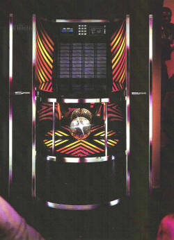 Stern/Seeburg SMC2 Phoenix 160 Selections, 45 RPM. Introduced fall, 1980. This machine was built by Stern after acquiring Seeburg during the bankruptcy sale. The main difference is that the vertical speaker columns are orange, and that the disco ball is always on and lighted, rather than the lights on only when the mechanism is running as in the Seeburg version, pictured above. One of my first tasks after the Seeburg buyout by Stern was to redesign the MCU's CPU board, to incorporate bug fixes, and to make the board easier to manufacture. Generally called the 'Sternburg' SMC2. Books applicable to this machine: Red & MCU Combination offer, Red & MCU, Mech book, SHP Amp |