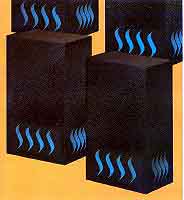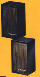 FR16 Power capacity: 16 Watts. Contains an 8-inch woofer, 3 1/2-inch tweeter, and crossover network. This speaker can either be used as C.V., or low impedance (low Z) as determined by which rear terminals are connected to the amplifier. These have the modern 'book-shelf' look. |