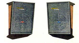 UCS1 Universal Column Speakers The Seeburg logo can be rotated so that the speaker can be mounted either horizontally or vertically. These, too are C.V. speakers and contain a pair of 8-inch speakers. One is a low-frequency woofer; the other is a high-frequency tweeter. Suggested retail price (September, 1974) USD $153.00 per pair. |